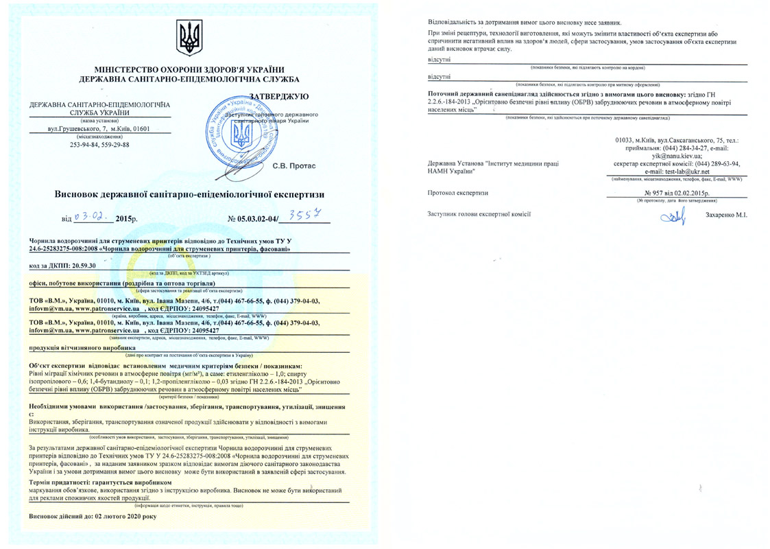 | Вид витратних матеріалів | Чорнило |